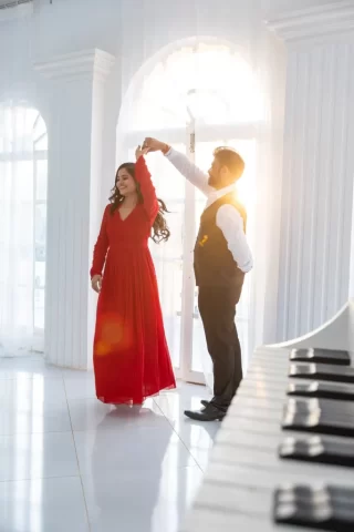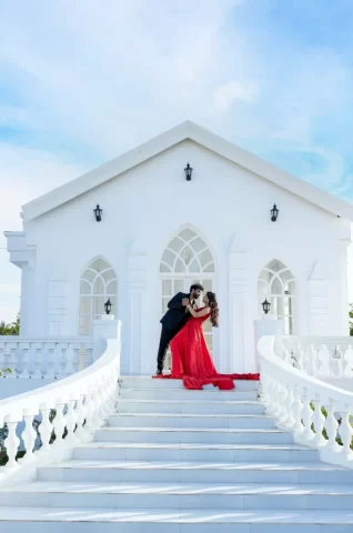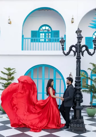 Yes, we provide both indoor studio setups and beautiful outdoor locations to give you variety in your pre-wedding photographs.