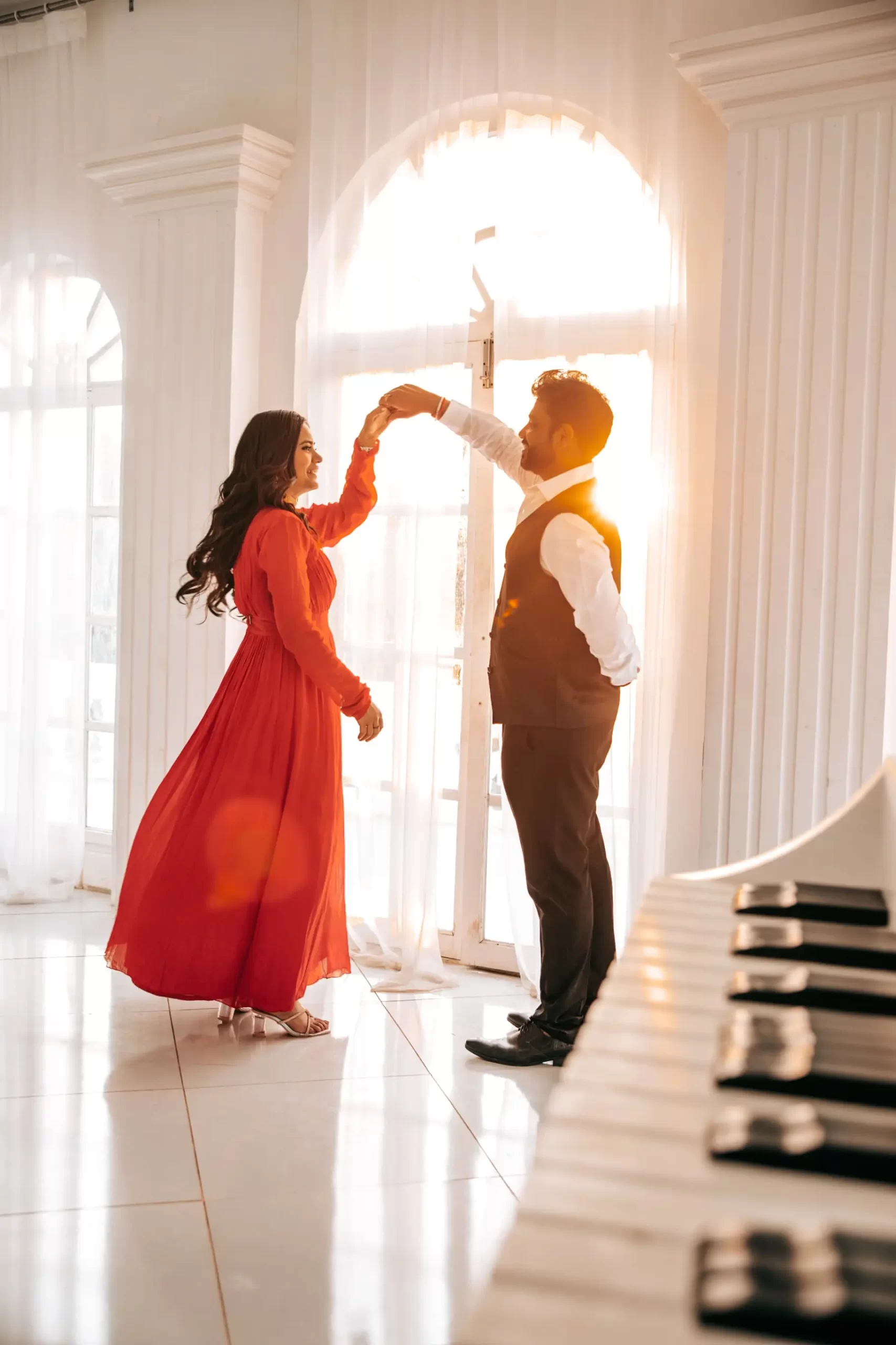 We offer styling guidance and can connect you with our trusted makeup artists and wardrobe partners. Most couples prefer 2-3 outfit changes during the shoot.
